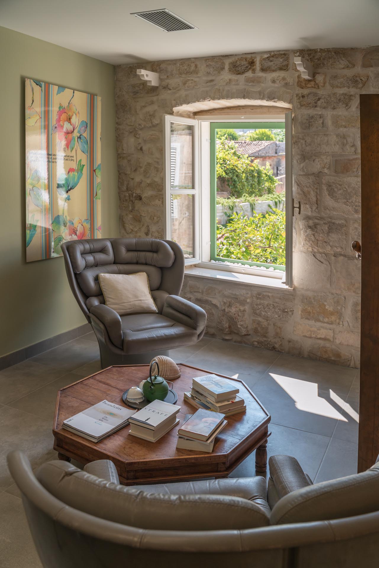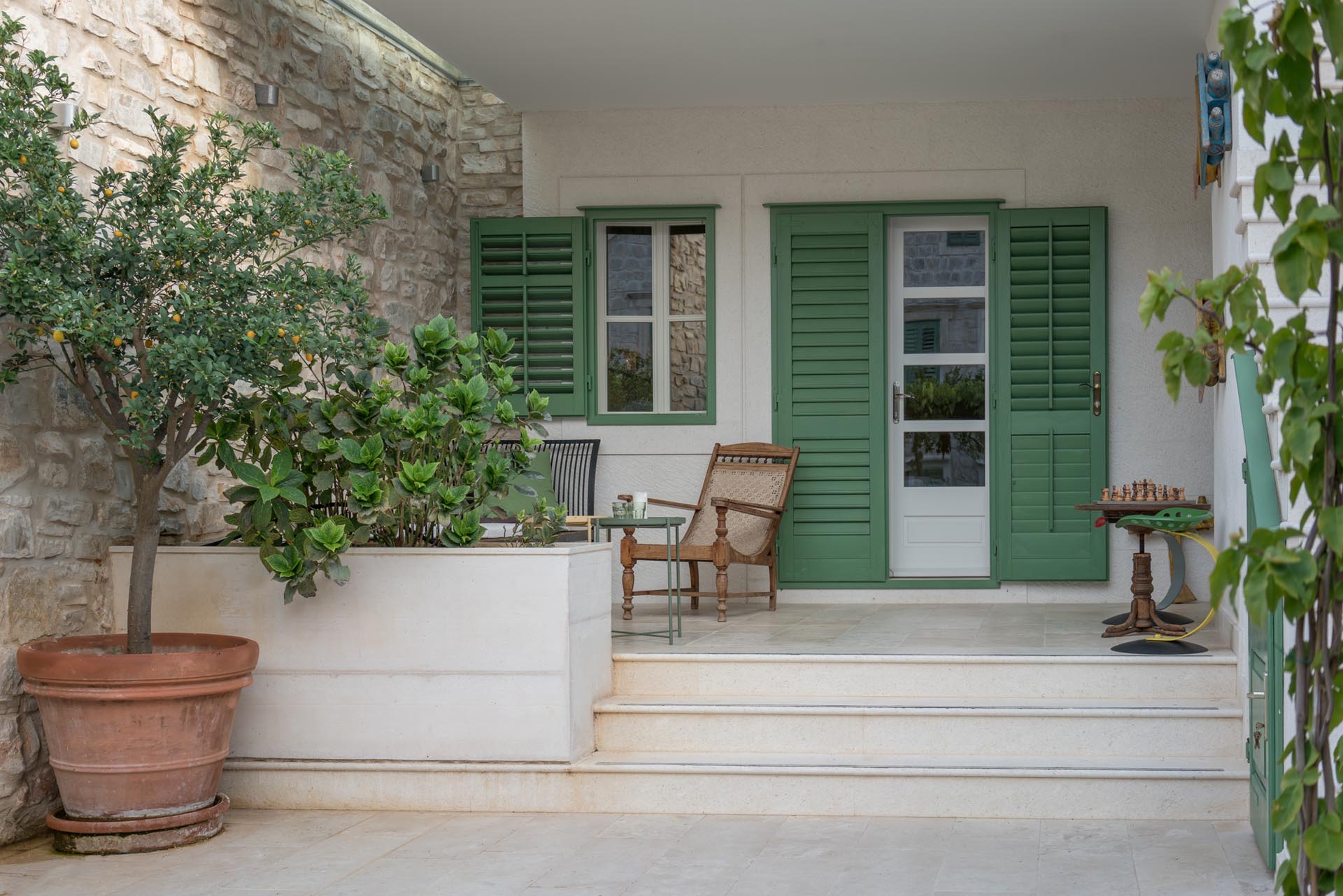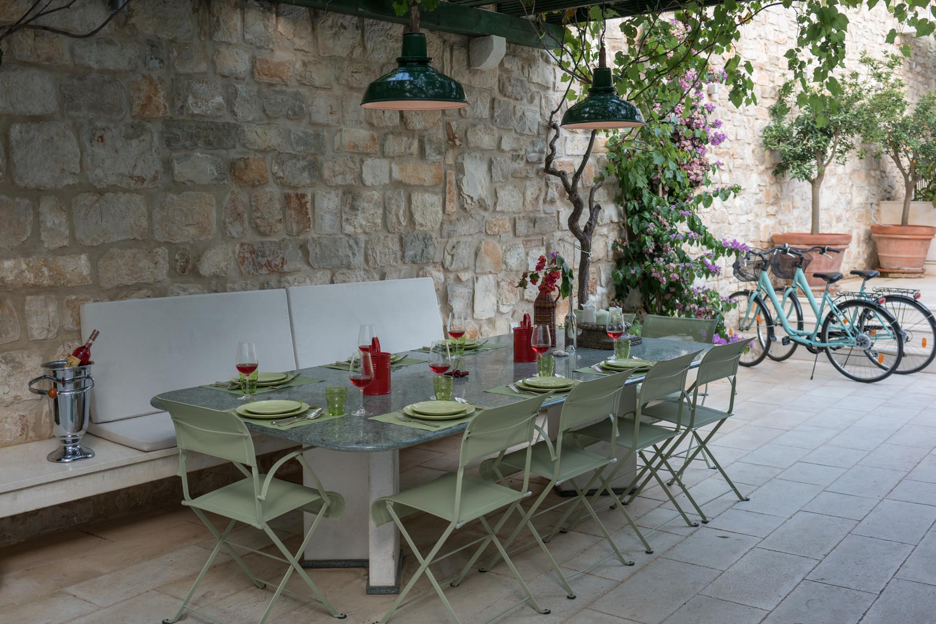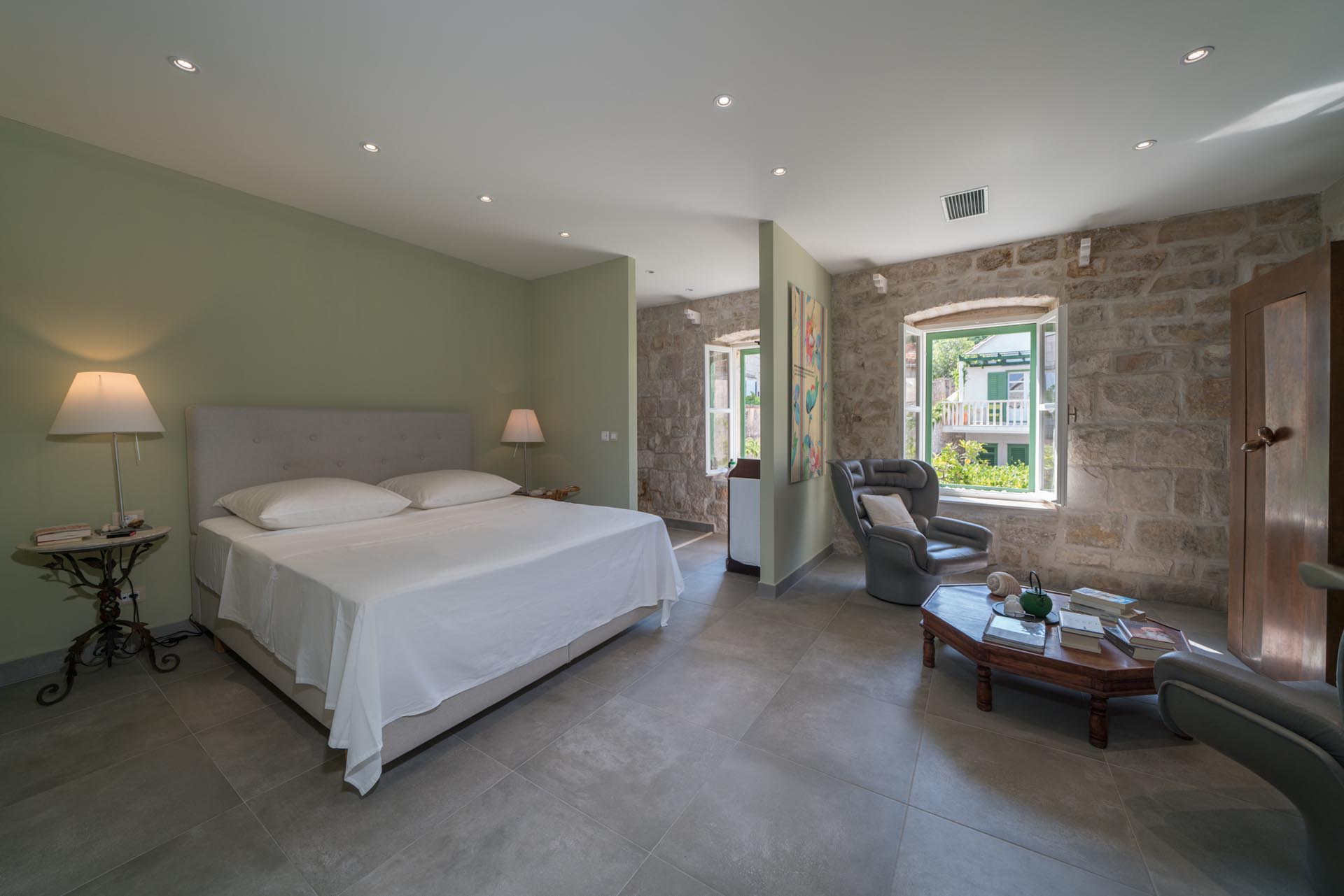 This magnificent villa, with a five star design is a combination of an old recently restored stone house and a modern addition. The villa is set in the heart of Vis old town, Kut, just a few steps from the sea. The main attraction is its spacious courtyard/terrace.