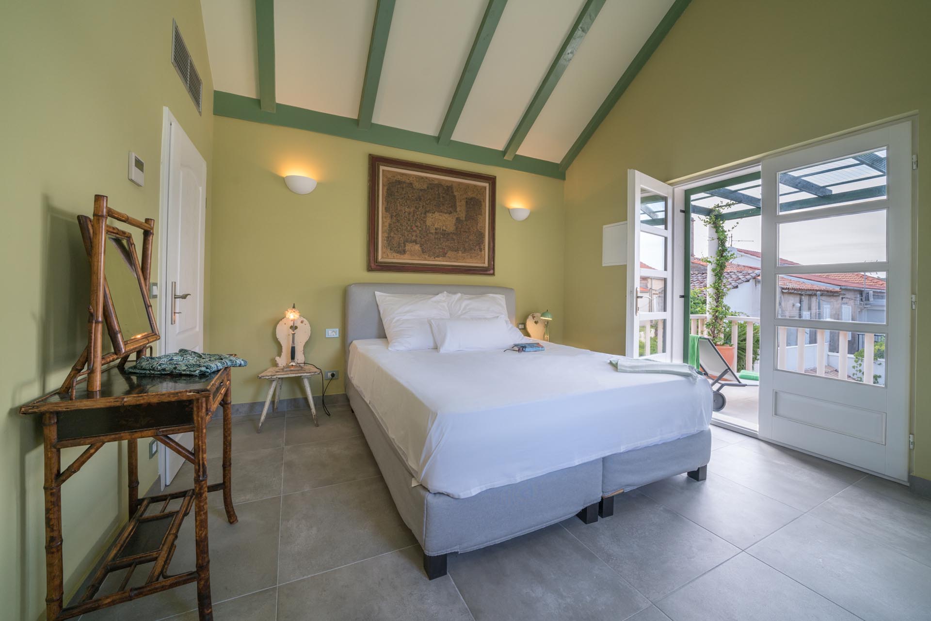 Recently renovated to a high standard (air-conditioned throughout), this villa consists of two houses conected with a spacious courtyard. On the ground floor of the main house there is an open plan kitchen-dining area with a living/sitting room going out to a lovely courtyard. On the first floor there is a large master bedroom and another double bedroom both with en-suite bathrooms. The second house contains two double bedrooms with en-suite bathrooms and each has an outdoor space.