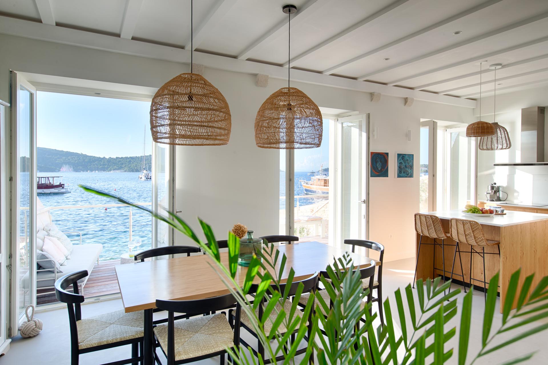 The kitchen is fully equipped, with a dining area and restroom. The seafront terrace is directly accessed from the kitchen/dining area. From the terrace you can access the jetty.